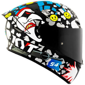 Capacete KYT TT Course Riccardo Rossi 2022 Joker Preto Mais Viseira Camaleão e Spoiler Fumê! O TT COURSE é o modelo de entrada no segmento de turismo esportivo da KYT. Um capacete integral, fabricado em resina termoplástica e equipado com a tecnologia ADT-Advanced que garante alta resistência a impactos. Com um design inovador e moderno, tendo suas formas estudadas e desenvolvidas em túnel de vento para alcançar performances aerodinâmicas cada vez mais elevadas, sem deixar de levar em conta a ergonomia. O TT COURSE possui um mecanismo inovador de viseira, projetado para oferecer simultaneamente eficiência e facilidade de uso graças ao sistema de travamento mecânico intuitivo. Contando com um forro tecnológico, removível e lavável produzido em tecidos macios e confortáveis, o TT Course é o capacete para se destacar todos os dias.