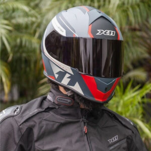 Capacete X11 Revo Pro Eleven (Óculos Solar) – Cinza / Vermelho! CAPACETE X11 REVO PRO ELEVEN